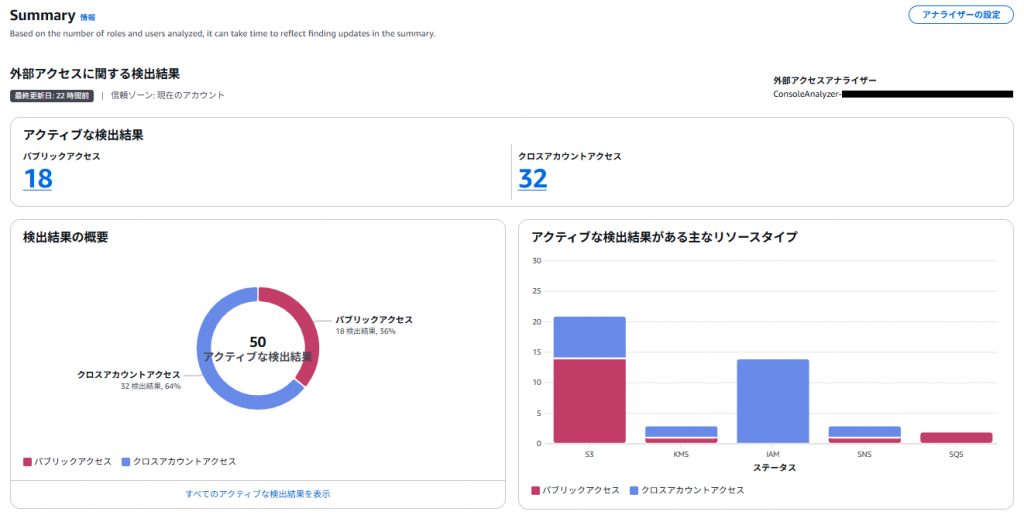 IAMロールやS3バケットなどで意図しない外部アクセスを許可していないかを確認出来たり、余剰に付与している権限を特定することが可能です。