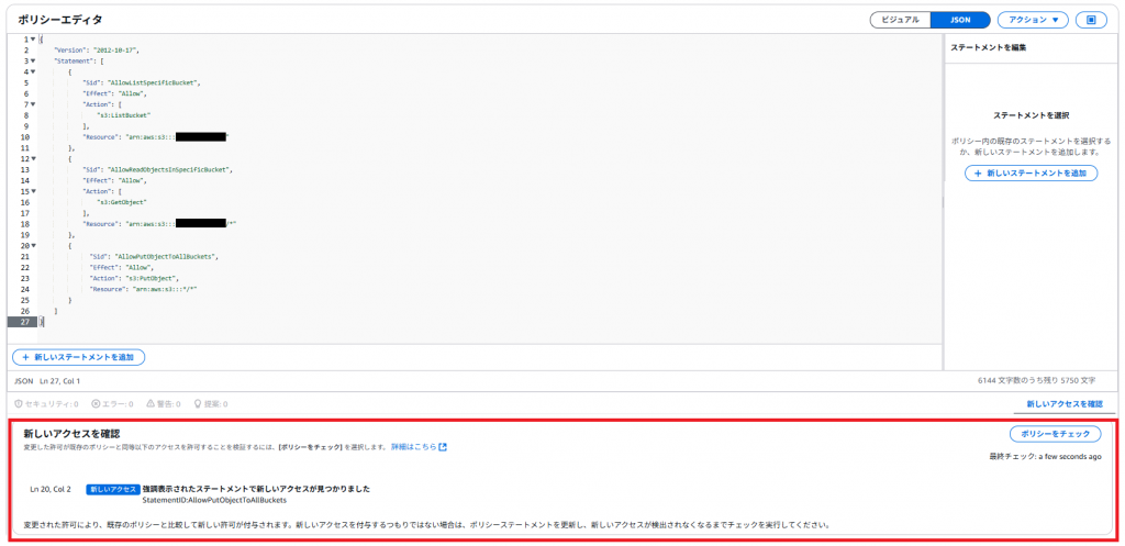 ポリシーが、リソースへの意図しないアクセスを許可していないかをチェック