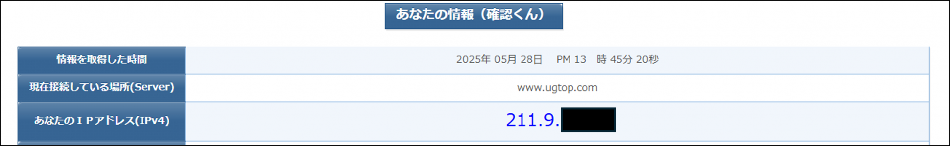 クライアントVPN接続後に接続元のクライアント端末にてインターネットに接続したところ、正常に接続できました。また、接続元のグローバルIPアドレスを確認したところ、VPNを経由せずに接続されていることを確認しました。
