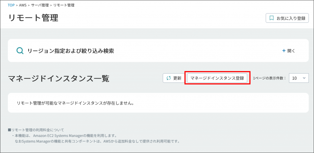 3.[マネージドインスタンス登録]をクリックします。