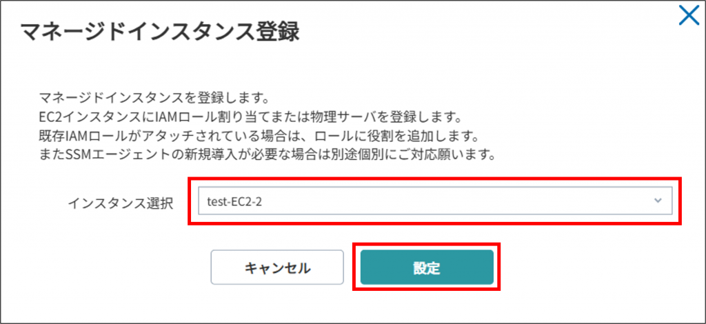 4.対象のインスタンスを選択して、[設定]をクリックします。