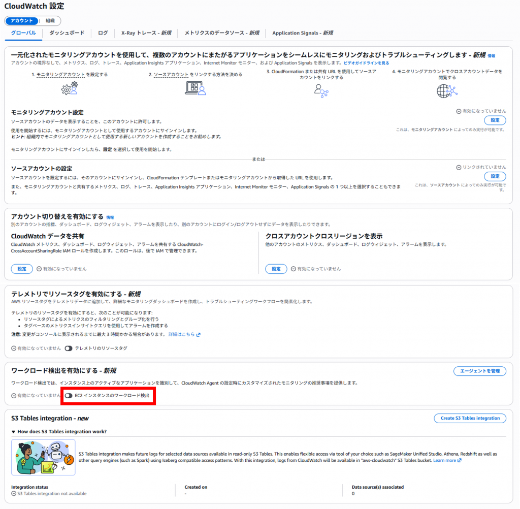 3.[ワークロード検出を有効にする]にて[EC2インスタンスのワークロード検出]を有効にします。