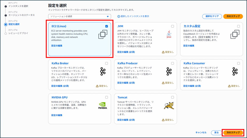 11.[EC2]が選択されたデフォルトの状態で、[次のステップ]をクリックします。