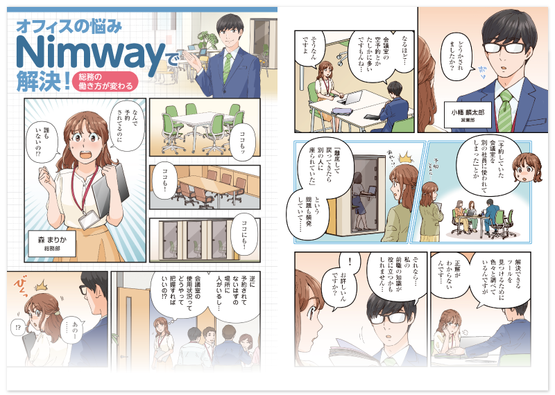 会議室の空予約や予約していた会議室が他の社員に使われてしまっていたりなどのオフィスの悩みを抱える総務部メンバー 森が、