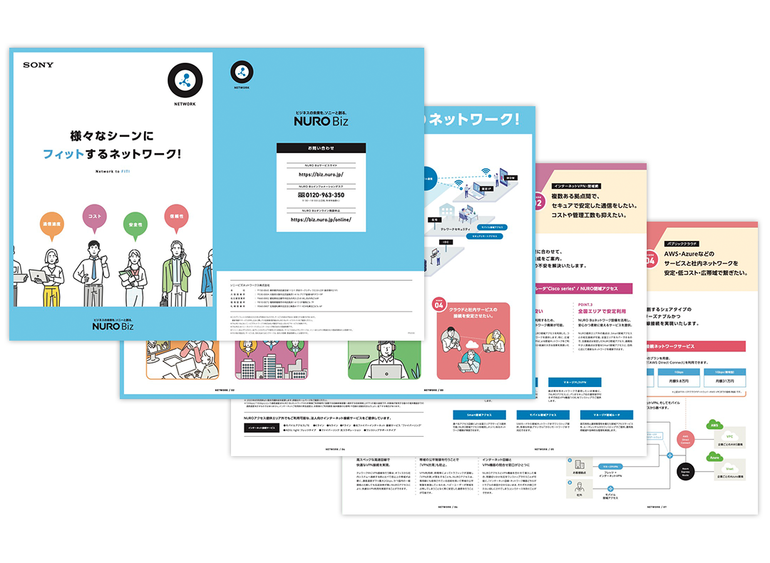 NURO Bizのネットワークサービスのサービスラインアップとシーン別ご提案例をご案内します。(全5ページ)