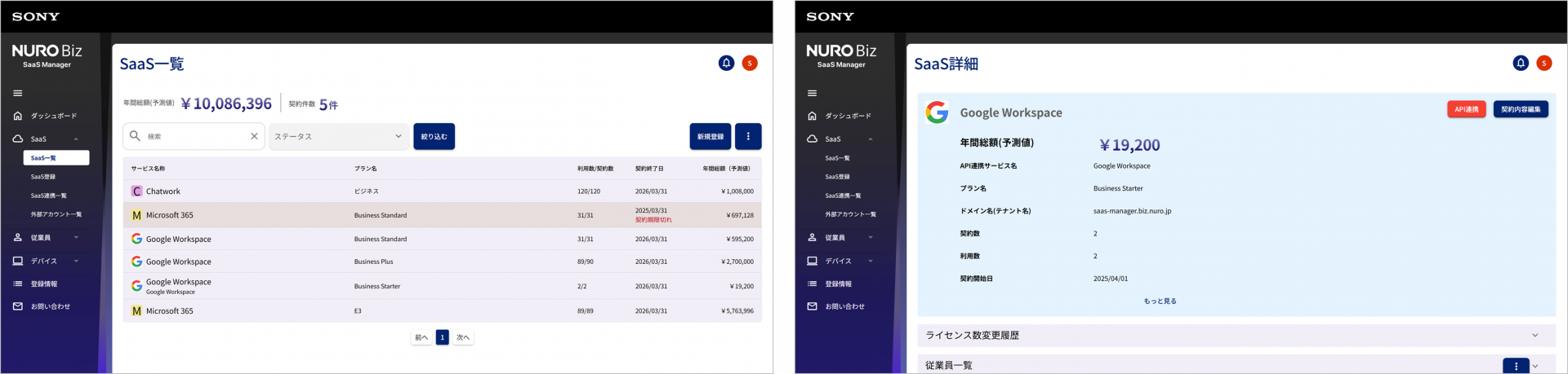 ソニービズネットワークス株式会社(本社:東京都渋谷区)は、法人向けICTソリューションブランド『NURO Biz(ニューロ・ビズ)』のサービスカテゴリ『NURO Biz Assist(ニューロ・ビズ アシスト)』の新たなラインアップとして、社内のSaaSやデバイスの利用状況と、従業員情報を可視化し一元管理する「Assist SaaS Manager(アシスト サース マネージャー)」を開発し、2025年6月17日(火)より提供を開始いたしました。