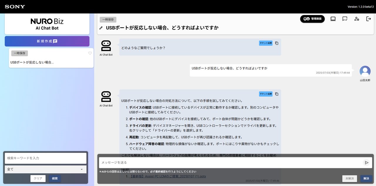 ソニービズネットワークス株式会社(本社:東京都渋谷区)は、法人向けICTソリューションブランド『NURO Biz(ニューロ・ビズ)』のサービスカテゴリ『NURO Biz Assist (ニューロ・ビズ アシスト)』の新たなラインアップとして、生成AIを活用した社内向けチャットボットサービス「Assist AI Chat Bot (アシスト エーアイ チャットボット)」を開発し、2025年7月18日(金)から提供を開始いたしました。