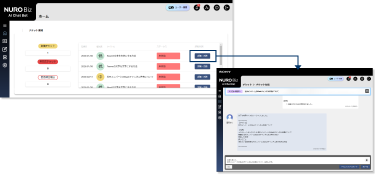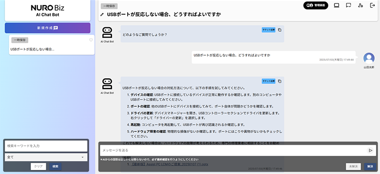 - 従業員からの問い合わせはAIが対話形式で自動応答