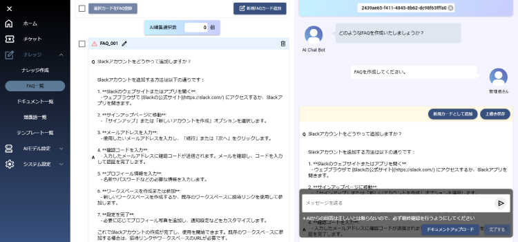 - フリーワード・ドキュメント・webページや情システンプレートから簡単にFAQデータを自動で生成
